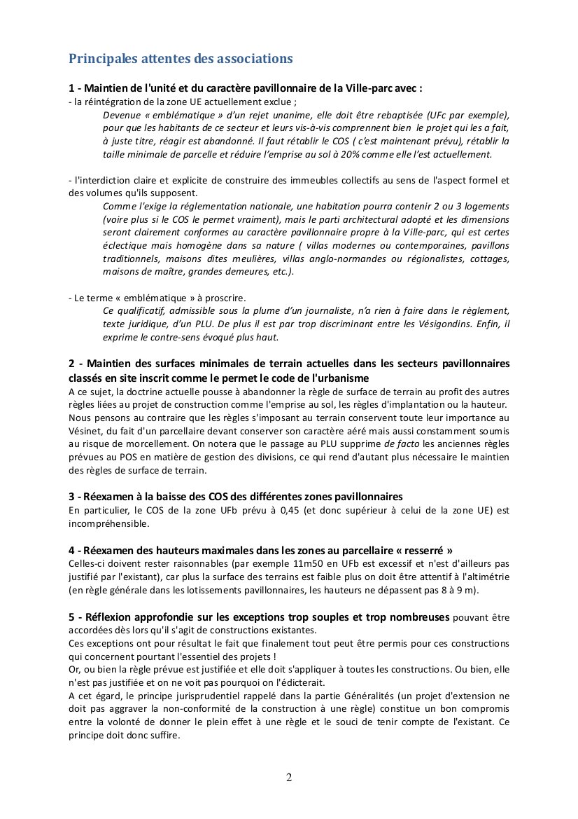 PAR LES PRINCIPALES ASSOCIATIONS DE DEFENSE DU VESINET