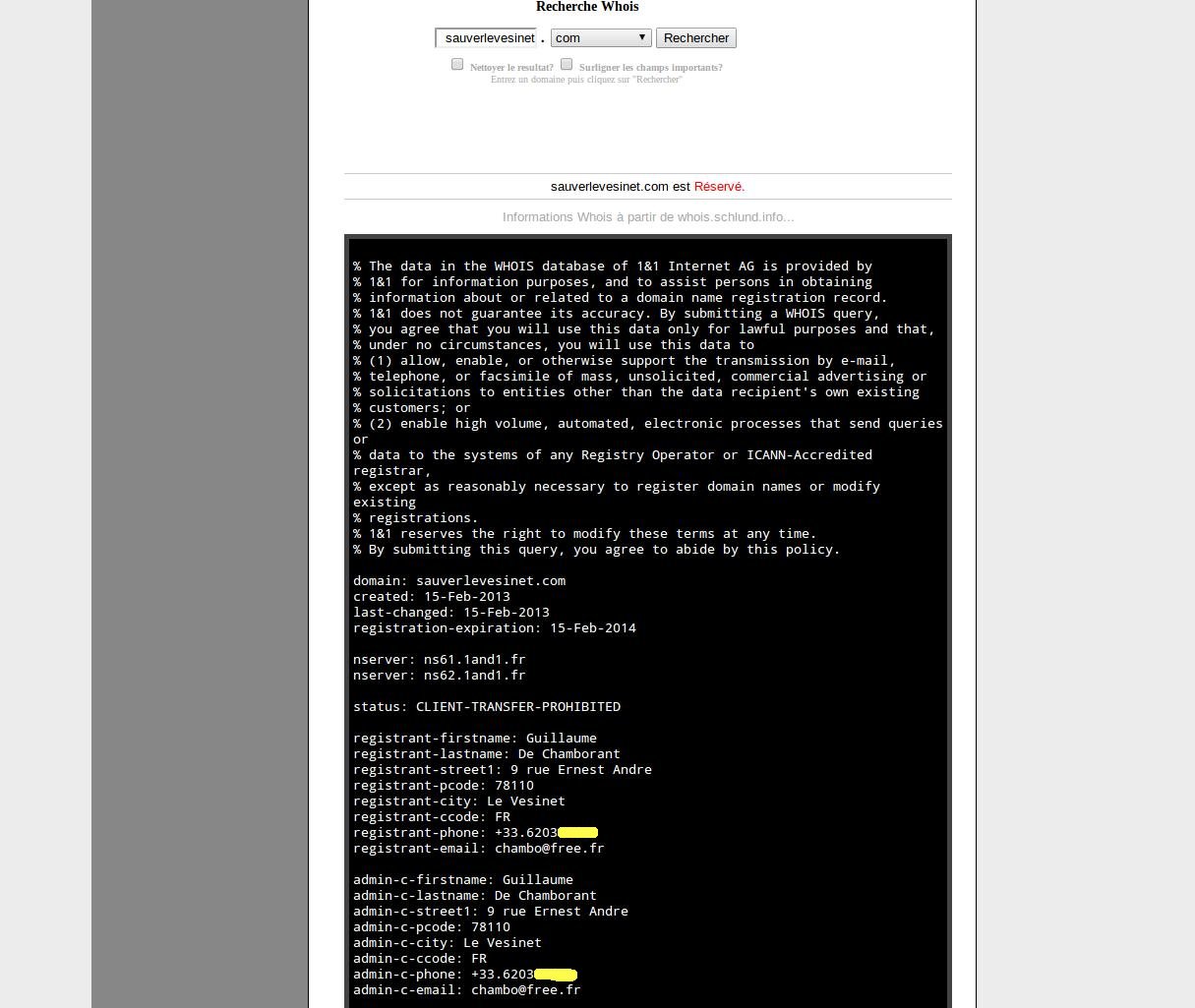 M. de Chamborant, vous êtes vraiment un amateur… Si vous vous étiez renseigné un tout petit peu avant de commettre votre forfait, vous auriez réalisé que dès la création du net, des aigrefins de tout bord ont déjà tenté ce genre d’escroquerie et ont été condamnés par les tribunaux…Des petits malins dans votre genre ont tenté des pepsi.com, dior.fr (et peut-être même des WARNER.COM… vous auriez dû essayer celui-là pour voir comment le propriétaire réagissait…). Notre association a déposé ses statuts en Préfecture, elle dispose de la personnalité morale et utilise sur le net le nom Sauver Le Vésinet depuis plusieurs mois. Où croyez-vous aller ? Imaginez-vous un instant qu’un tribunal reconnaîtra votre bonne foi ? Peut-être est-ce une notion qui vous est étrangère ?
