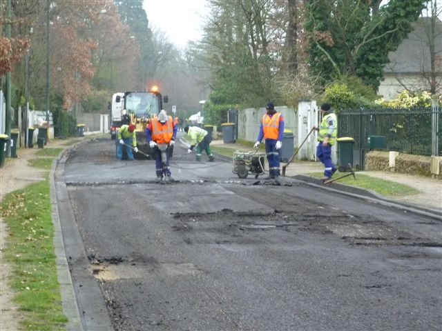 Grande joie pour les amoureux du Vésinet la semaine dernière: des travaux de voirie étaient en cours afin de réparer l’allée du Grand Veneur au nord du Rond Point du Cerf.  Enfin, on se décidait à boucher des trous qui étaient là depuis des mois ! Plus loin, au début de l’avenue du Belloy, près du commissariat, les trous qui avaient été antérieurement sommairement comblés par les services municipaux, venaient également de faire l’objet d’un traitement « plus professionnel ».