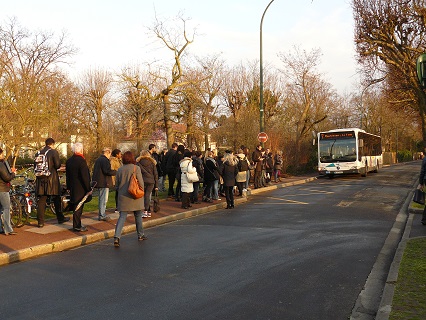 Ce mercredi soir à 18h10, il y avait foule rue Alexandre Dumas pour prendre le bus 7 qui relie en direct la gare du Pecq au centre de Montesson. En revanche, avenue Georges Bizet, les bus 22, 21, 20, 19 repartaient avec 10 à 15 personnes pas plus. Et pourtant c’est une heure d’affluence… Pour le bus 19 de 18H20, pas plus de 10 passagers et P1140553dans celui de 18h30, 16 passagers précisément (pour des bus de 108 places…). Il serait intéressant que nos élus fassent une opération-surprise de comptage du nombre de passagers (sous contrôle d’huissier ?) qui arrivent à la gare et en repartent sur chaque ligne ayant son terminus dans cette gare…