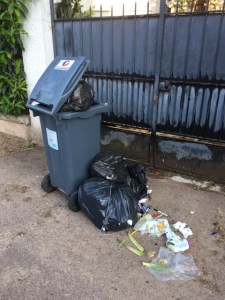 En effet, le ramassage des ordures ménagères, papiers, cartons, métal, plastique et verre « à partir de 15h00 » (dans certains quartiers 19h30) pousse les habitants quelque peu déboussolés, ne retenant pas précisément à quelle heure leurs containers seront ramassés, à sortir pour plus de tranquillité leurs poubelles dès le matin en partant travailler, alors que pour certains quartiers le passage des camions ne s’effectue qu’en fin de journée. Bilan : les containers traînent dans la rue dans une grande désorganisation du dimanche soir au vendredi matin… Il n’est pas rare de voir plusieurs bacs de collectes différentes alignés sur les trottoirs. Sans parler des ordures qui sont déposées hors containers ou qui en débordent et deviennent des festins pour les corbeaux dont la recrudescence en ville est plus que préoccupante.