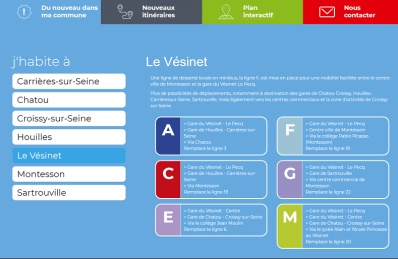 Aucune information préalable des usagers , horaires illisibles sur le site a qqs jours de la mise en oeuvre de ces nouvelles lignes. Perte des liaisons en bus vers saint germain en laye notamment, aucune amélioration de la desserte de certains quartiers de chatou qui obligeaient notamment à repartir vers le rer À Le Vésinet Le Pecq pour aller vers le centre de chatou via la station rer chatou croissy … et d’autres Observations seront à venir après étude des documents mis en ligne … quand ils seront tous devenus lisibles. Quelle concertation a été faite entre les communes? J’habite chatou mais utilise beaucoup l’arret Charmettes du Vésinet