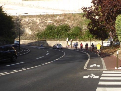La seule réalisation valable citée dans cet article n’est pas du fait de la commune, il s’agit des deux pistes cyclables réalisées par la CASGBS dans la montée de Saint Germain : piste cyclable sur le trottoir partagé avec les piétons à l’écart du trafic automobile. Cet aménagement s’inscrit, dit l’article du dernier « Vésinet Magazine », dans un projet global porté par la CASGBS et la ville du Vésinet. La ville du Vésinet ? Quelle audace ! Disons peut être les 19 communes qui composent la communauté d’agglomération.