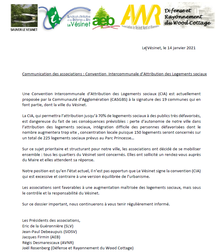 1. Il serait utile de mentionner qu’il y a une pétition en cours pour obtenir un référendum sur le ce sujet (facilement accessible en cherchant « pétition Vésinet » sur un moteur de recherche).