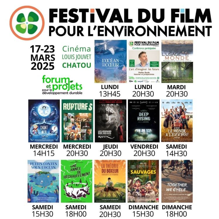 Organisé du 17 au 23 Mars par l’association Forum et Projets pour le Développement Durable, le festival du film pour l’environnement contribuera à donner l’envie d’agir chez les habitants de la boucle !